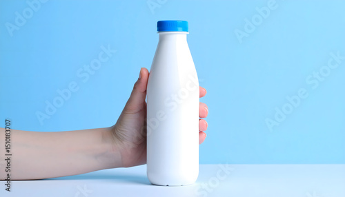 female hand, milk bottle, minimalism, white background, sustainability, environmentally friendly, natural beauty, simplicity, purity, wellness, harmony