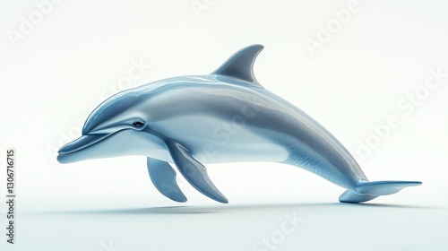 Graceful light blue dolphin in a 3D render gracefully arcs its sleek body to the left, with a softer blue tail enhancing its fluid elegance
