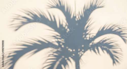 Graceful palm tree shadow cast on a warm wall by bright sunlight, evoking tropical summer vibes