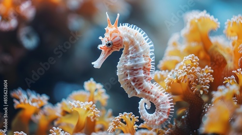 seahorse, coral, vibrant, delicate, marin, ocean, underwater, aquatic, nature, wildlife, sea, creature, clear, blue, water, environment, beauty, graceful, detail, life, ecosystem, tropical, colourful, natural, flora, fauna, macro, closeup, elegant, animal, tiny, fragile, diversity, serene, tranquil, biology, aquarium, photo, ecological, conservation, biodiversity