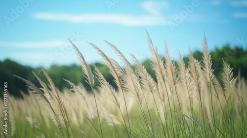 Graceful wheat stalks sway under a vibrant blue sky, capturing the essence of nature's serene beauty.