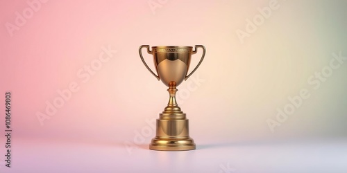 Gradient of colors in the background with a delicate bronze trophy sitting at the center, achievements, victory, laurel wreath