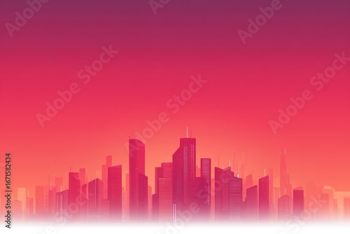 skyline, city landscape, urban, city, building, architecture, silhouette, gradient, red, orange, purple, sunset, sunrise, mist, fog, distance, modern, tall, high, metropolis, abstract, futuristic, background, vista, panorama, scenic, dusk, dawn, tower, construction, development, planning, urbanism, perspective, vibrant, illustration, graphic, design, artistic, creative, contemporary, digital, bright, view, horizon, shape, minimal, simplified