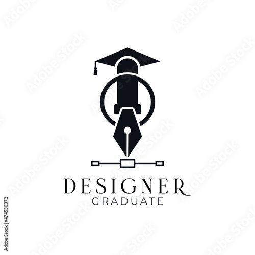 Graduate Toga Hat Pen Tool for School Education University College Academic Campus logo design. Graphic design
