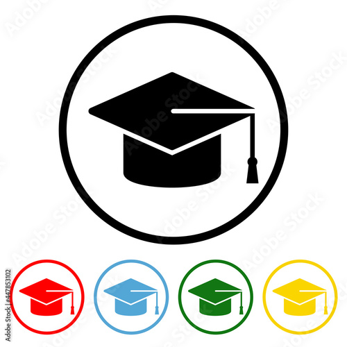 Graduation Cap Flat Icon with Color Variations. Graduation Cap icon vector illustration design element with four color variations. Vector illustration. All in a single layer. Elements for design.