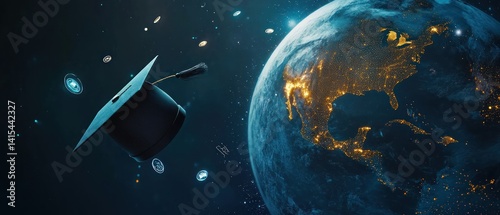 graduation, space, earth, cap, night, star, education, cosmos, celebration, achievement, universe, planet, astronomy, degree, galaxy, success, future, exploration, cognition, adventure, science, innovation, dream, technology, journey, inspiration, celestial, atmosphere, light, discovery, hope, vision, wonder, distance, travel, perspective, milestone, progress, creativity, imagination, possibility, ambition, connection, oneness, diversity, brilliance, potential, growth