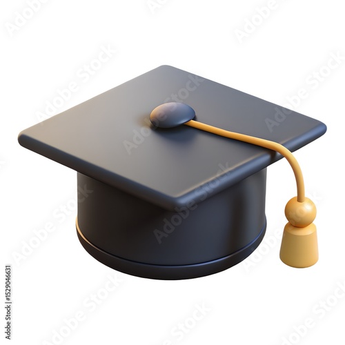 graduation, cap, mortarboard, academic, three-dimensional, render, icon, education, learning, student, school, university, college, degree, diploma, certificate, cognition, success, achievement, celebration, white, background, isolated, black, gold, yellow, simple, minimal, graphic, design, element, symbol, illustration, model