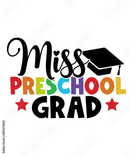 Graduation miss preschool grad typography clip art design on plain white transparent isolated background for card, shirt, hoodie, sweatshirt, apparel, tag, mug, icon, poster or badge