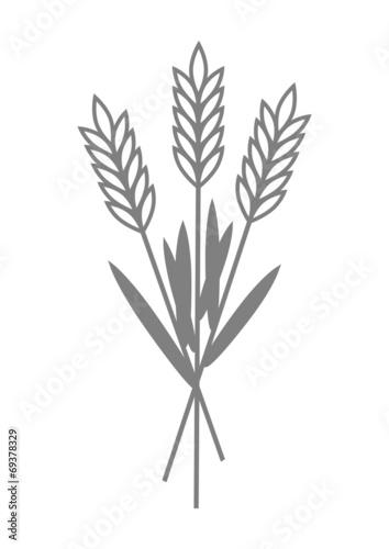 grain, ear, food, corn, cereal, agriculture, agricultural, vector, illustration, icon, symbol, crop, grow, growth, harvest, isolated, natural, nature, organic, plant, rye, stem, wheat, botany, grey, grey, white, white background