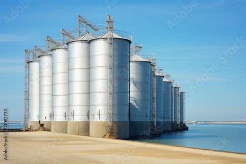 granary, metal structures for storage and export of wheat and corn. AI generated