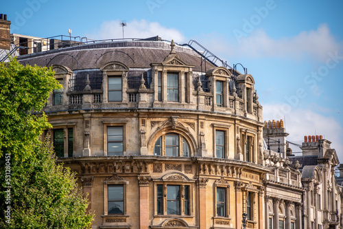 Grand buildings along trafalgar square in England.