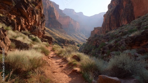 canyon, trail, hiking, desert, rock, mountain, nature, landscape, grand canyon, arizona, us, path, adventure, exploration, scenic, travel, photo, vista, view, sunrise, sunlight, morning, light, arid, flora, vegetation, plant, red, brown, earth, dirtied, geology, national park, america, southwest, wild, journey