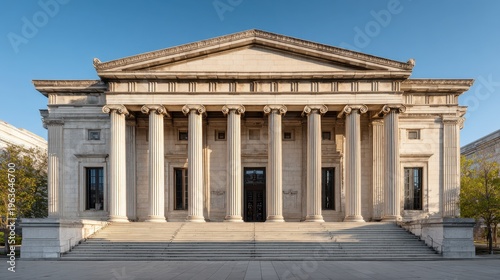 bank, column, ionic, neoclassic, facades, architecture, marble, entrance, step, grandeur, city landscape, building, exterior, historic, urban, illuminated, pillar, granite, colonnade, monumental, stone, daylight, ornamentation, timeless, heritage, sunlit, classic, symmetry, masonry, masonry, capital, morning light