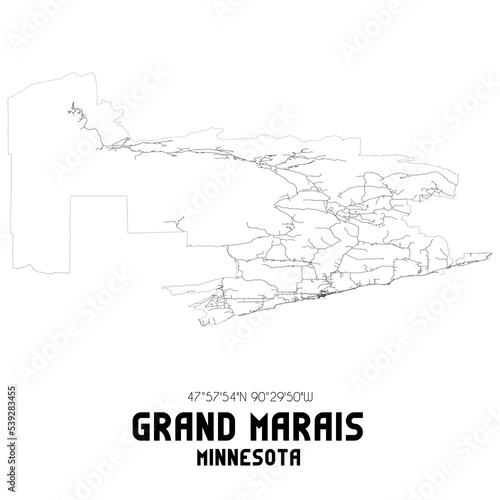 Grand Marais Minnesota. US street map with black and white lines.
