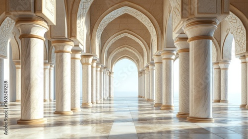 mosque, interior, architecture, column, arch, marble, light, grand, elegant, islam, muslim, religious, building, design, pattern, white, beige, gold, ornate, detail, perspective, symmetry, row, hall, space, bright, calm, serene, peaceful, spiritual, clean, pure, texture, reflections, shadow, sunlight, floor, ceiling, arabesque, decor, stone, classic, majestic, ancient, opulent