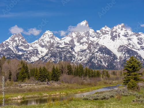 landscape, grand teton national park, snow, mountain peak, nature, scenery, tree, forest, river, wyoming, nobody
