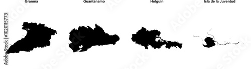 Granma, Guantanamo, Holguin, Isla de la Juventud outline maps