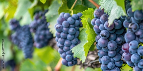 Grape farm fruit tree growth ivy row green leaf under sunlight nature.