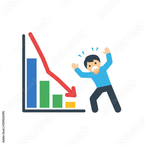 decayed, graph, crisis, panic, financial, economy, recession, loss, investment, stress, fear, business, market, stock, datum, analysis, bad, fall, reaction, emotion, success, chart, businessman, three-dimensional, growth, arrow, people, finance, up, diagram, concept, person, bar, illustration, progress, signs, money, career, statistic, down, vector