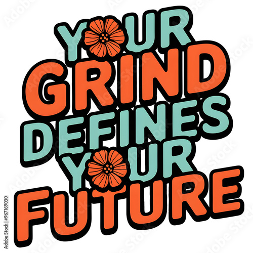 Graphic affirmation quote retro groovy design "Your grind defines your future" Inspirational saying, positive affirmation.