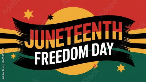 freedom, day, celebration, star, lettering, graphic, text, red, yellow, green, black, flag, event, holiday, culture, history, heritage, symbol, design, banner, african, american, emancipation, june, nineteenth, independence, festive, commemoration, liberation