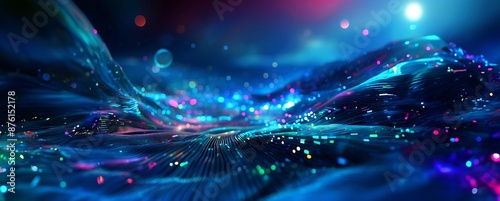 Graphic design background of tech scene or neon light blue beige tone. AI generated, highlighting the process of integrating technology into traditional business models, Digital transform