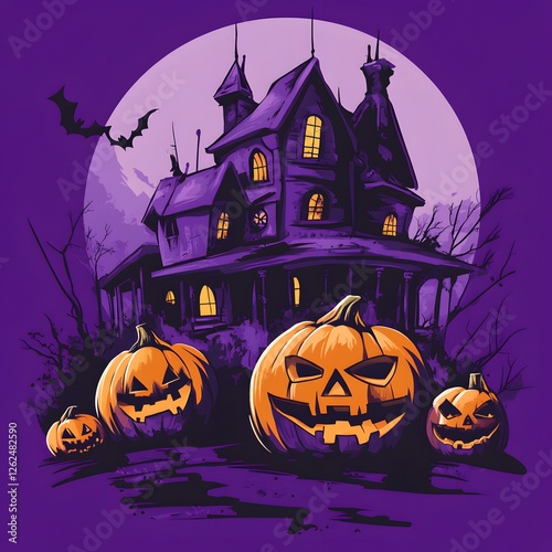 "Graphic T-Shirt Design Featuring a Haunted House for Halloween, with Spooky Elements and Eerie Vibes Perfect for a Chilling Fall Celebration"
