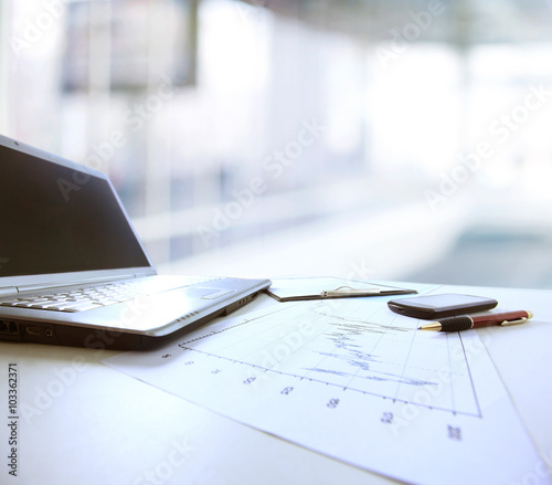 Graphs, charts, business table. The workplace of business people