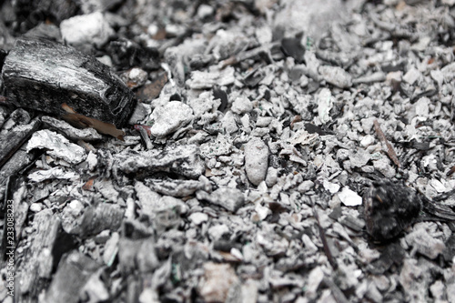 Gray ash from the oven background texture, cinder, grey ashes from the wood from the fireplace