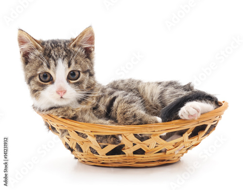 kitten, cat, pet, animal, background, domestic, white, grey, basket, fur, isolated, cute, looking, mammal, 1, young, object, purebred, box, small, british, whisker, brown, plastic, fluffy, single, playful, beautiful, container, life, winter, innocence, friendship, eye, fear, transportation, moving