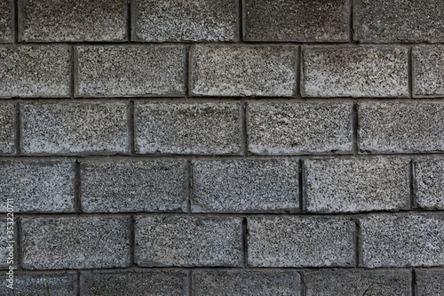 .Gray concrete wall with bricks-shaped texura. .Gray, old concrete wall.
