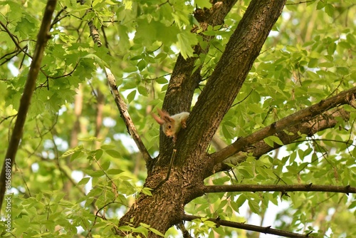 tree, nature, forest, green, tree branch, tree, spring, wood, leaf, plant, trunk, leaf, old, summer, foliage, branch, bark, oak, natural, park, beauty, flora, sunny, squirrel