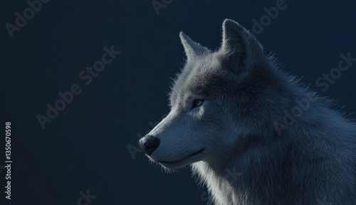 Gray Wolf Profile at Night, Dark Background