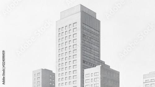 Grayscale Ink Illustration Capturing Architectural Details of a Corporate Tower with Negative Space Emphasizing Modern Design Elements and Urban Aesthetics