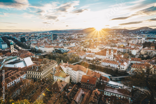 graz, aerial, architecture, austria, blue, building, city, city landscape, clock, dawn, dusk, hill, landmark, night, old, panoramic, park, sky, street, sunrise, sunset, tour tourism, tower, town, travel, view