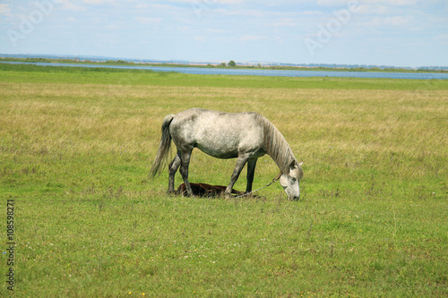 grazing, horse, rural, farm, photo, white, pet, meadow, animal, domestic, ranch, graze, farmhouse, homestead, equine, beautiful, countryside, mane, foal, colt, mare, mother, standing, lying, animal, farm animal, landscape, brown, green, grass, nature, summer