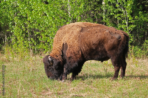 Grazing Male Bull Wood Bison or Mountain Bison - British Columbia, Canada