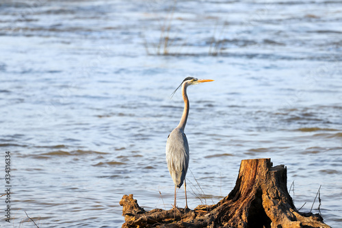 great blue heron in water
