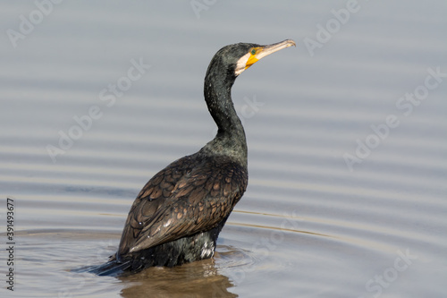 Great Cormorant wading in shallow water