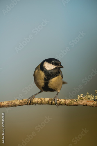 Great Tit (Parus major) perched on branch in forest, Alicante, Spain, Europe