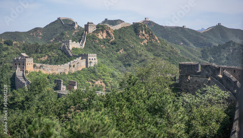 wall, town, old, rock, travel, fortress, china, fort, wall, great wall, watchtower, gate, watch, panorama, summer, green, countryside, village, mountain, town, nature, view, city, hill