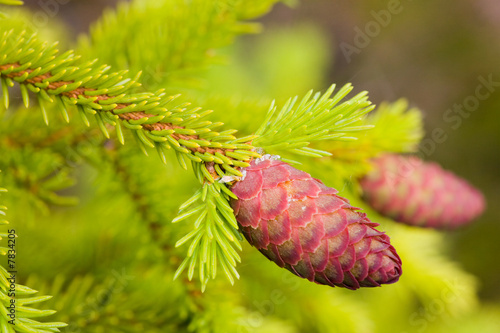 tree, cone, season, background, nature, macro, forest, needle, wood, detail, evergreen, coniferous, tree branch, closeup, fir, decoration, green, red, twig, outdoors, single, botanical, blossom, summer