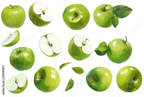Green apple watercolor illustration clipart.