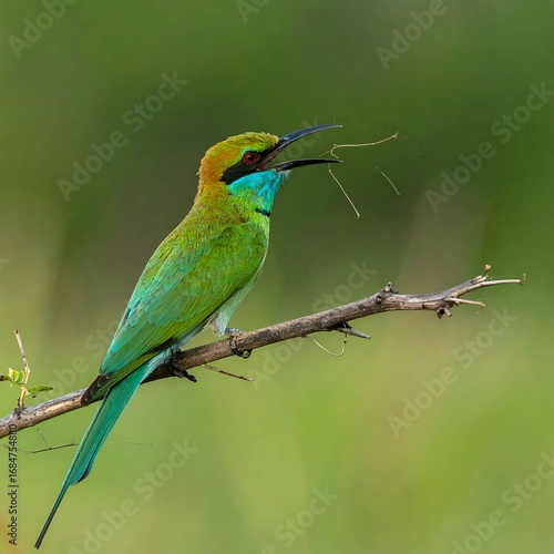 bee-eater, bird, green, perch, tree branch, wildlife, nature, photo, animal, avian, exotic, colourful, vibrant, beak, feather, plumage, tropical, wild, outdoors, fauna