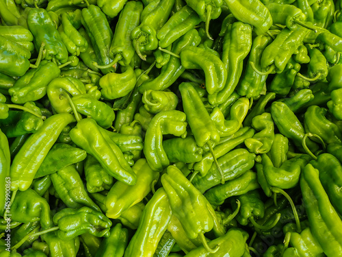 Green bell pepper plantation with plastic film placed over the ground, Sweet pepper plant in a farmer's field, paprika, bell pepper in greenhouse or glasshouse, in state Jijel Algeria, North Africa.