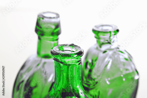 Green bottles in close up