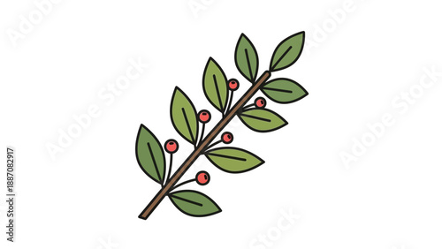 Green Branch with Red Berries - Simple Botanical Illustration