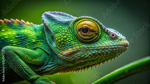 green, chameleon, basking, sunlit, tree branch, vibrant, scale, contrasting, lush, foliage, reptile, nature, wildlife, zoology, herpetology, camouflage, adaptation, environment, forest, jungle, rainforest, tropical, exotic, colourful, beautiful, amazing, stunning, unique, rare, endangered, pet, hobby, photo, art, design, wallpaper, background, illustration