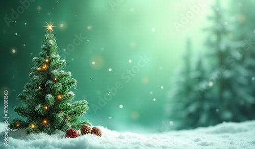 green christmas scene set abstract winter backdrop predominantly green color scheme