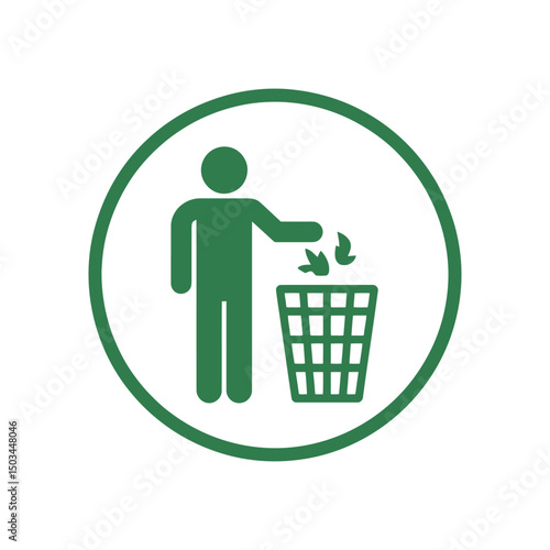 icon, circular, green, person, throwing, trash, waste, bin, cleanliness, environmental, responsibility, reusing, reuse, reduce, eco, friendly, sustainability, nature, pollution, litter, garbage, waste management, disposal, recycling, conservation, environment, environmentally friendly, sustainable, earth, planet, clean, tidy, symbol, signs, graphic, design, vector, illustration, clip art, simple, minimal, flat, style, isolated, white, background, logotype, garbage bin, rubbish